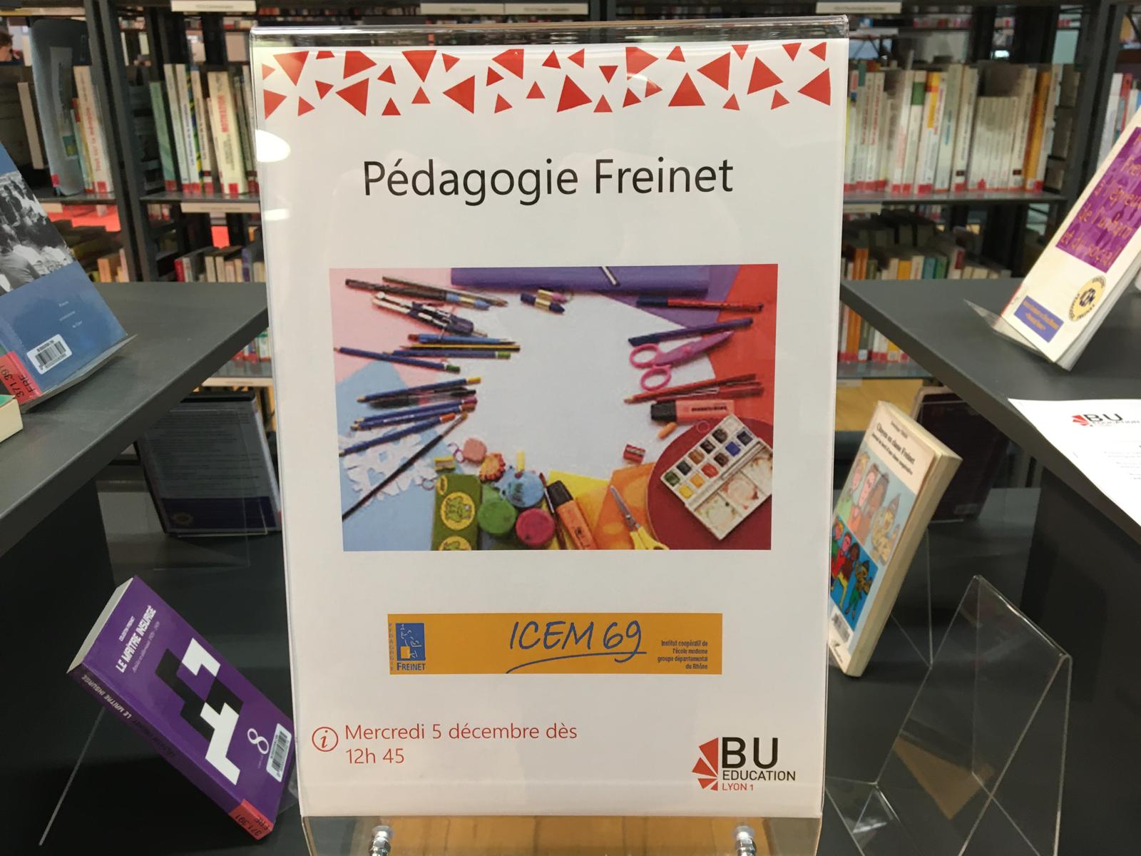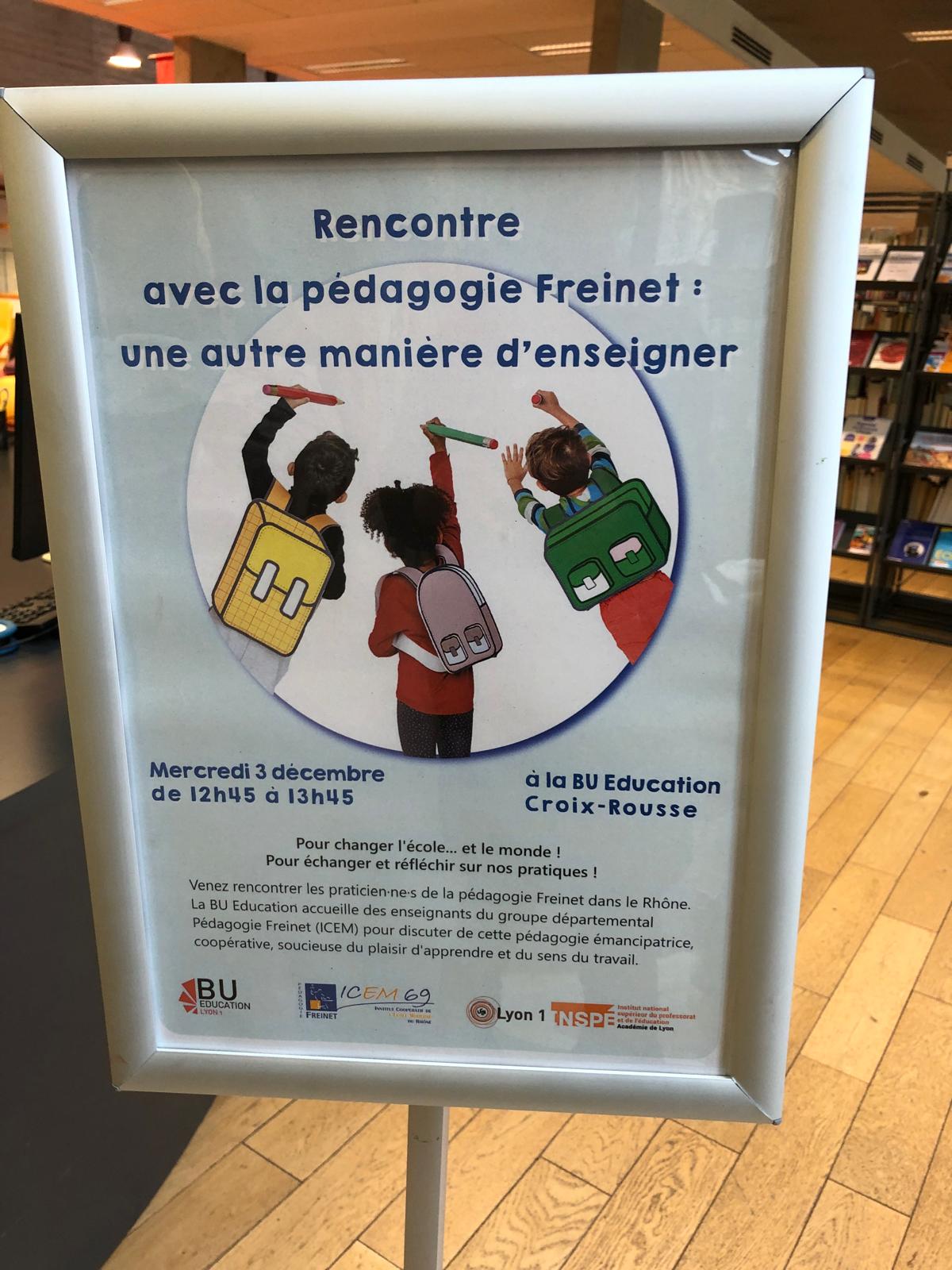 Le mercredi 3 décembre, l’ICEM-69 était invitée à la BU de l’INSPE. C’était l’occasion de présenter des ouvrages, de rencontrer des étudiants et de présenter quelques dispositifs de la pédagogie Freinet.